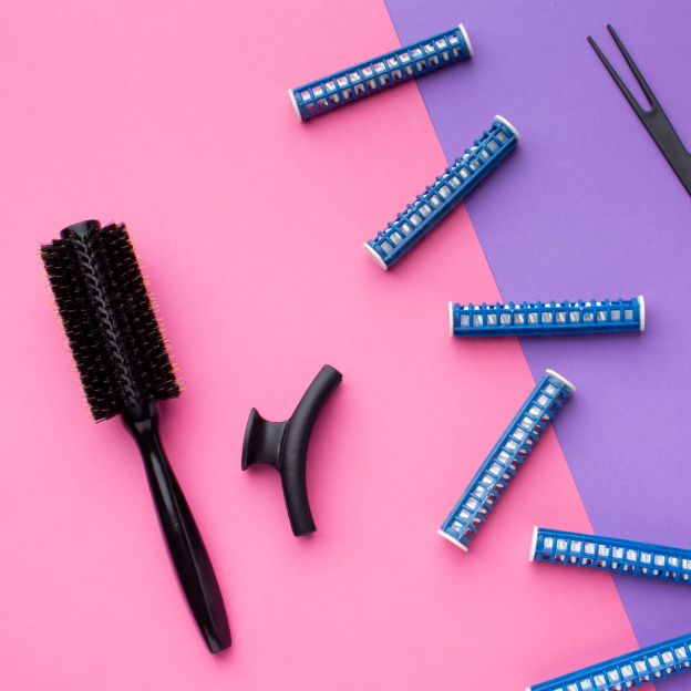 A hair roller or hair curler is a small tube that is rolled into a person's hair in order to curl it, or to straighten curly hair, making a new hairstyle.[1] The diameter of a roller varies from approximately 0.8 inches (20 mm) to 1.5 inches (38 mm). The hair is heated, and the rollers strain and break the hydrogen bonds[citation needed] of each hair's cortex, which causes the hair to curl. The hydrogen bonds reform after the hair is moistened. A hot roller or hot curler is designed to be heated in an electric chamber before one rolls it into the hair.[2] Alternatively, a hair dryer heats the hair after the rolls are in place. Hair spray can temporarily fix curled hair in place. In 1930, Solomon Harper created the first electrically heated hair rollers, then creating a better design in 1953. In 1968 at the feminist Miss America protest, protesters symbolically threw a number of feminine products into a "Freedom Trash Can". These included hair rollers,[3] which were among items the protesters called "instruments of female torture"[4] and accoutrements of what they perceived to be enforced femininity.